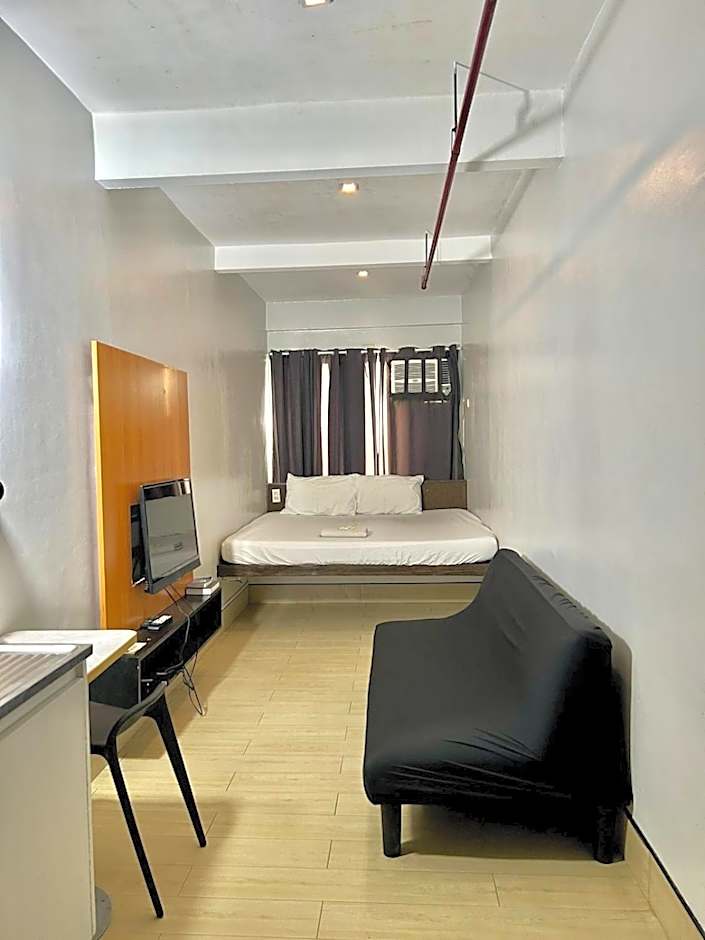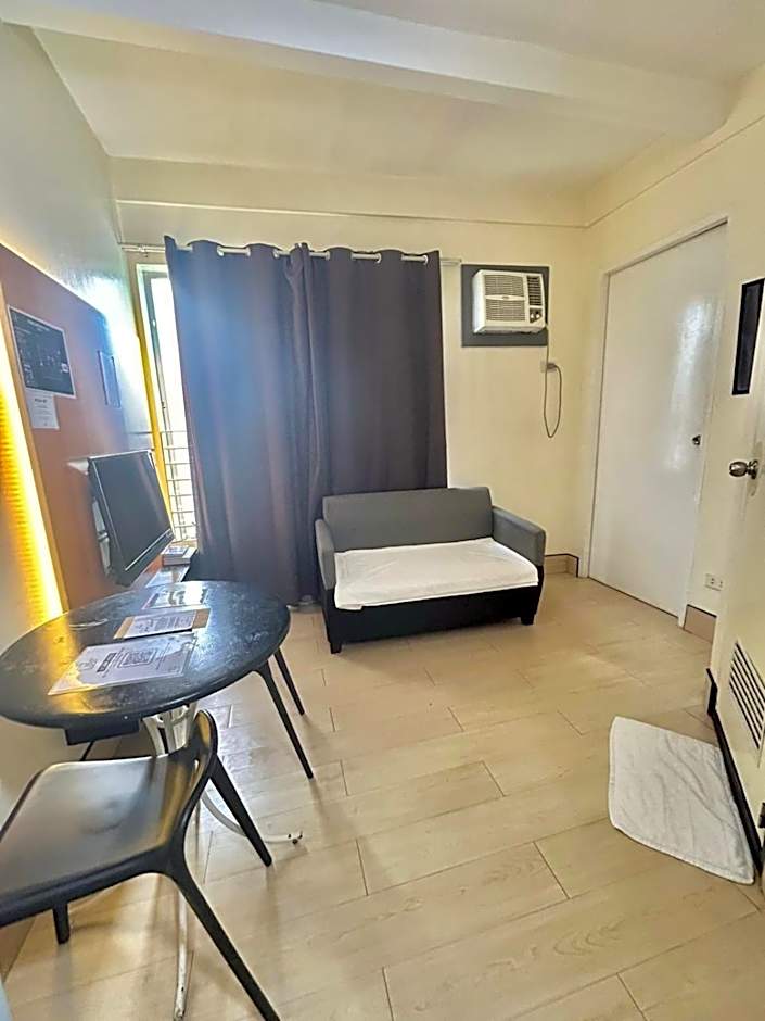 This apartment features air conditioning and seating area.